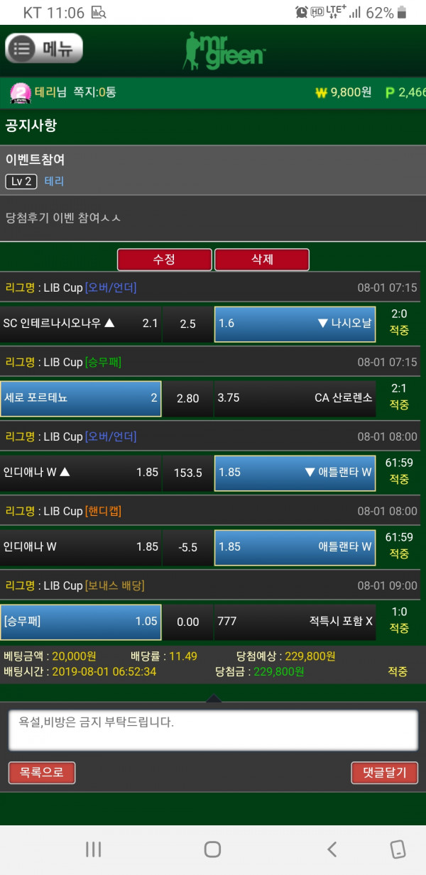 미스터 그린 당첨후기