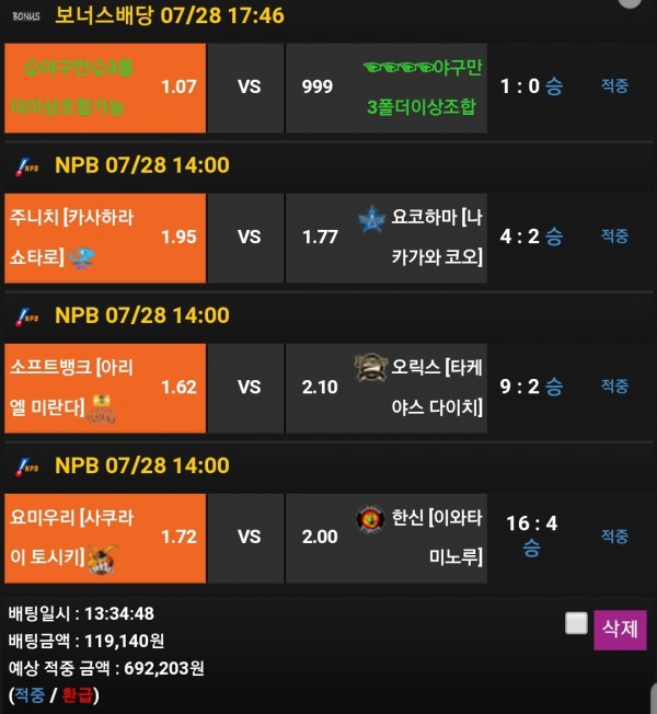 다음 배팅은 꼭 건승하시길 기원하겠습니다^^