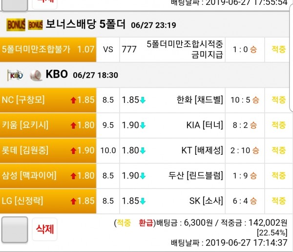 5만원 주력은 한폴인데 우연히 올오버가들어왔네요.. 첫충이너무좋아서 항상로또가는데 오늘처음 맞네요..충환전매일10퍼 배당좋은해태 꼭 쓰세요ㅎ