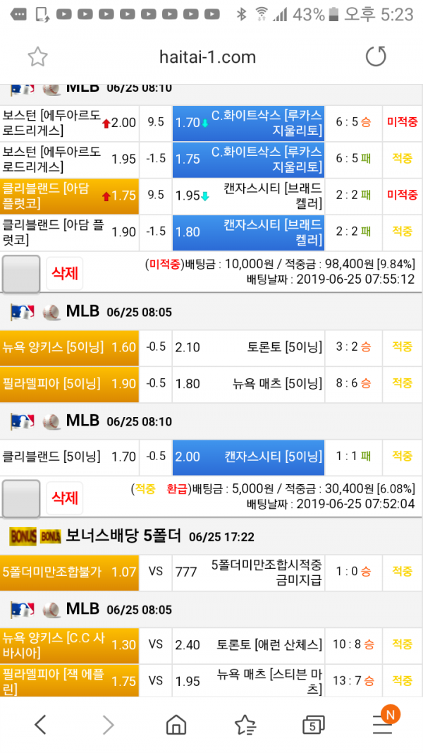 오늘 믈브는 경기들이 어려웠던거 같네요