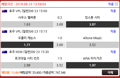 호주리그 축구 적중했어요