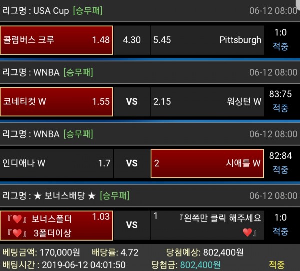 축하합니다!!!! 스포츠 당첨 !!!!! 항상 건승 하셔서 부자 되시기를 바라겠습니다