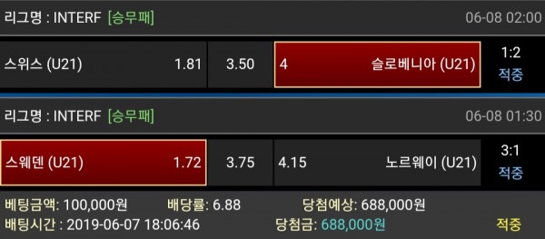 축구 2폴 기분좋게 적중!!
