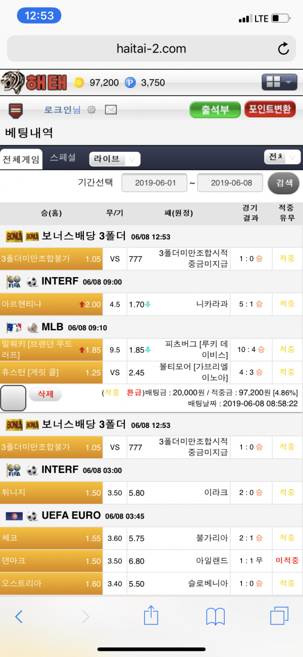 해태 당첨샷