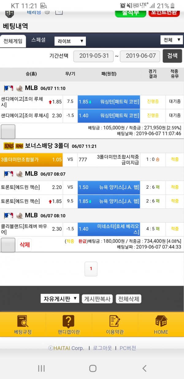 해태 3폴 적중