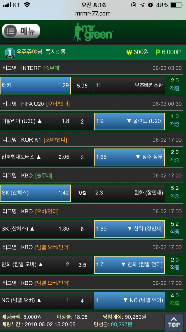 미스터그린 6폴 먹은 후기