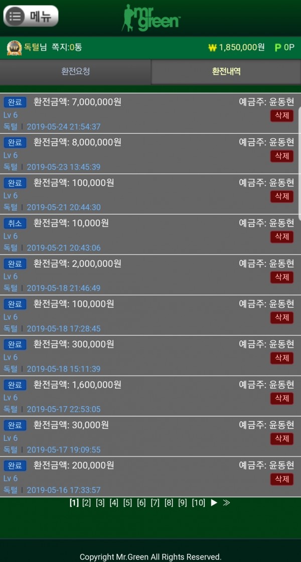 나야.. 환전하면 좋으니 가지고 있던 800을 환전신청하였다.