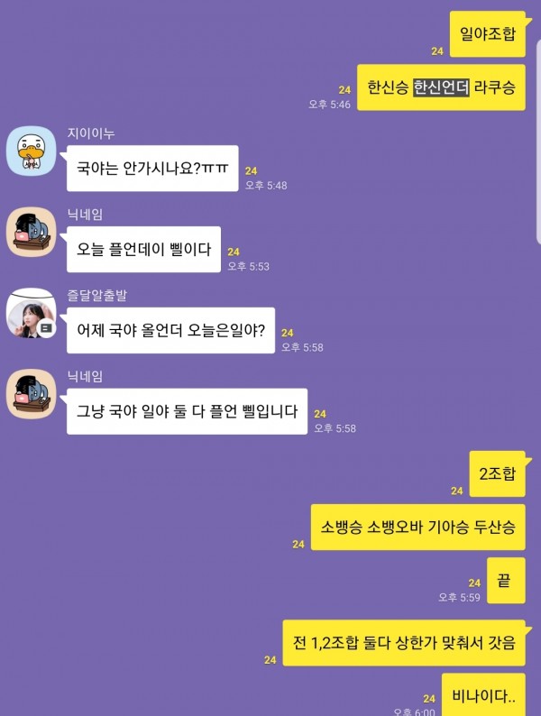 일야가 먼저 시작하기 때문에 먼저 픽을 공유하였다.