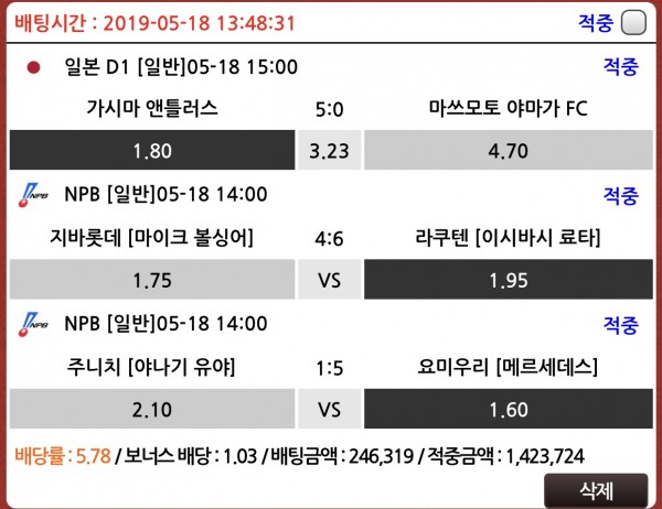 저번에 소뱅 걸었다가 라쿠텐한테 대 역전패 당해서