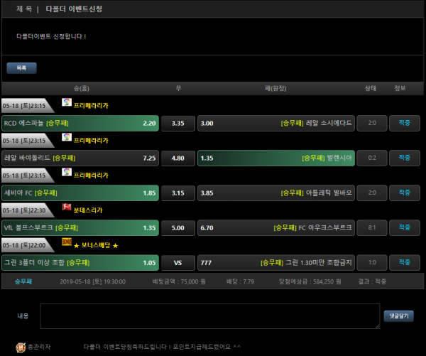 기본적인 이벤트도 많고 배팅하기 정말 좋습니다