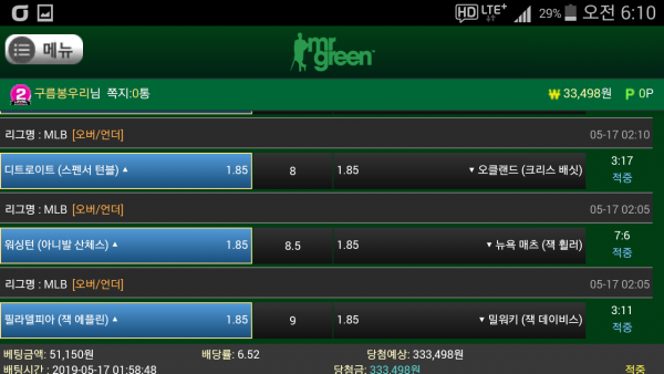 5안받아서 빠르게 야구 오버3개 점수넉넉하게 오버데이엿네요 ㅎ
