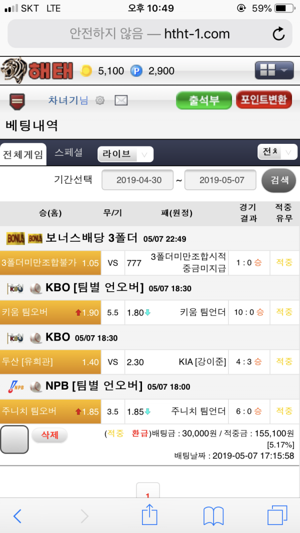 오랜만에 3폴당첨