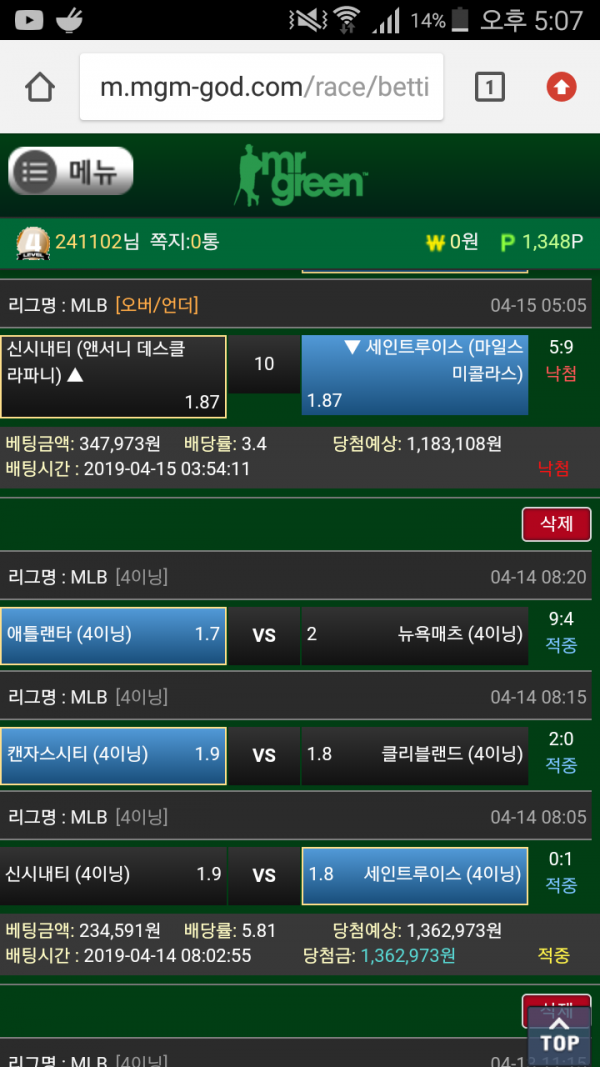 예전배팅내역이지만 찾아서올려봅니다 ㅎㅎ