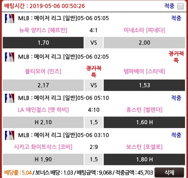 한폴더 적특되서 아쉽지만 그래도 나머지 경기들 깔끔하게 먹었네요~