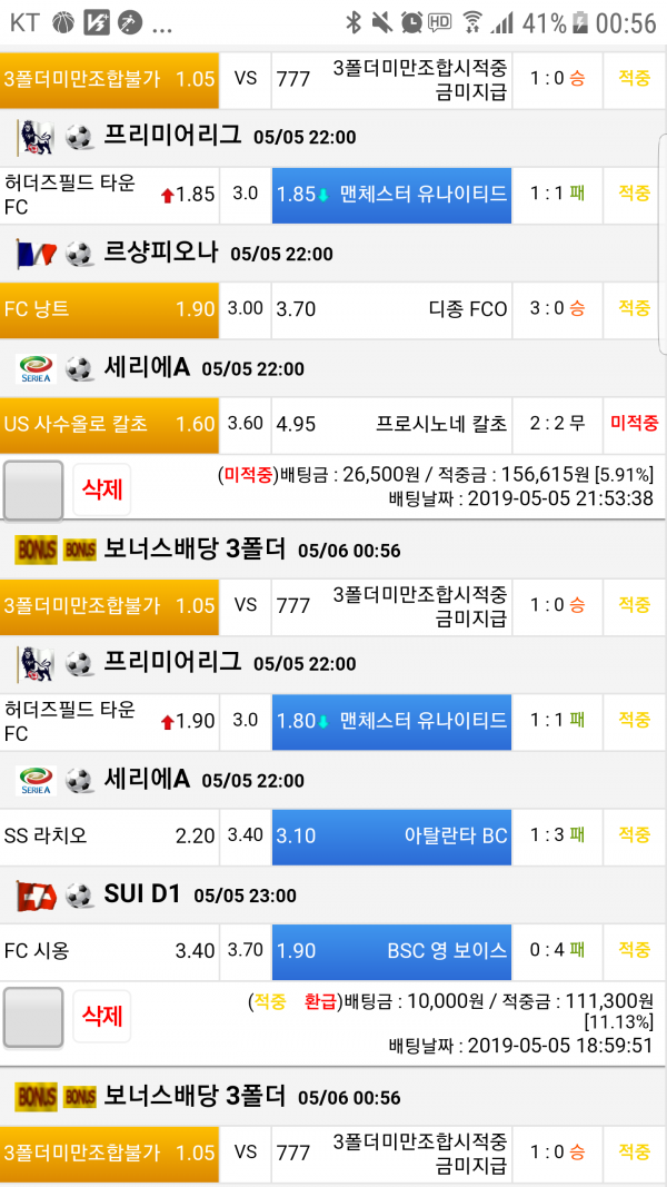 진짜 오랜만에 먹는 3폴이네요ㅋㅋ 3폴 잘 안되는 징크스 때문에 4폴로 항상 갔었는데 오늘 다른거 다 미적되어서 본전이지만 오랜만에 먹으니 기분은 좋네요 1시 로마 경기 응원하러 가야겠습니다 다들 건승하십시오!! 좋은 연휴 되시구요ㅎㅎ