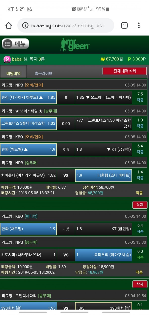 미스터그린 3폴더당첨 어린이날 ㅅㅅ