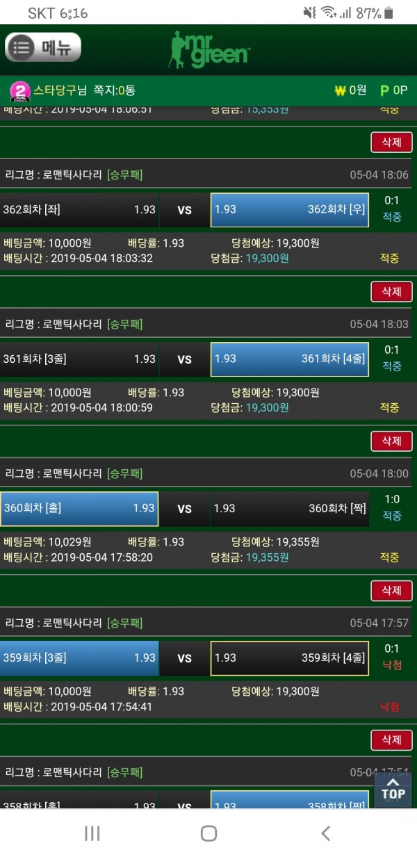 로맨틱 사다리 연승 축하드립니다 즐거운시간되셨나요???