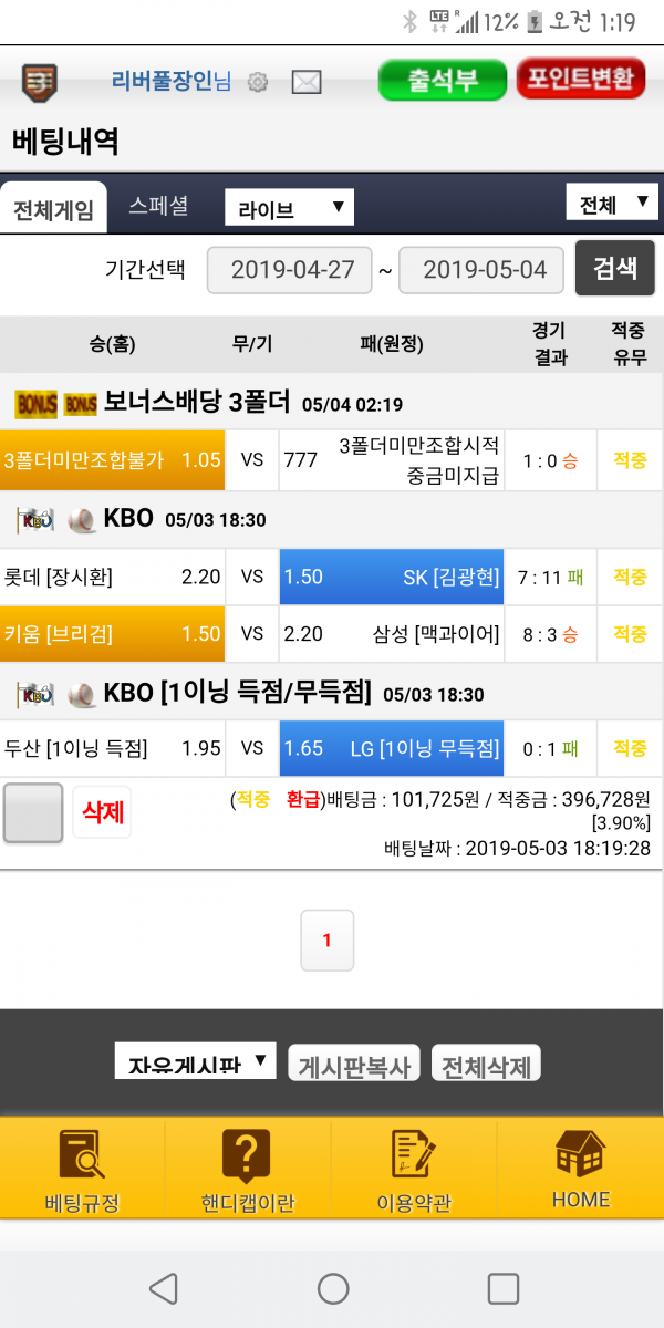 다음 배팅에서도 건승 기원합니다~