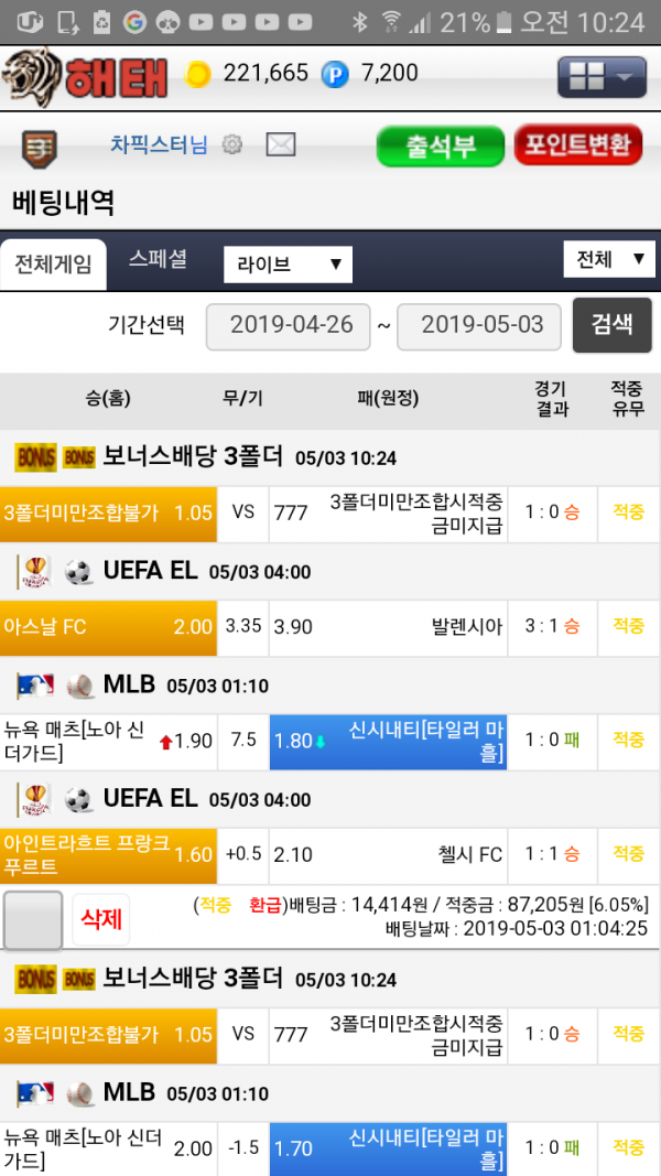 다음 배팅도 건승 기원합니다