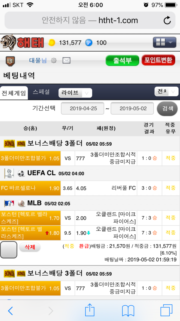 다음 배팅도 건승 기원합니다~