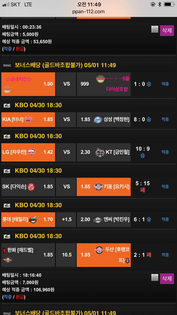 평소에는 매번 올미적 뜨다가 오늘 드디어 올 적중이 떴습니다 다폴로 가서 기대는 별로 없었지만 좋은 결과가 나와서 기분이 매우 좋네요 기분도 좋은데 올적중하면 포인트도 주는 판때기는 더 대단하네요 ㅋㅋㅋ 앞으로도 자주 이용할게요