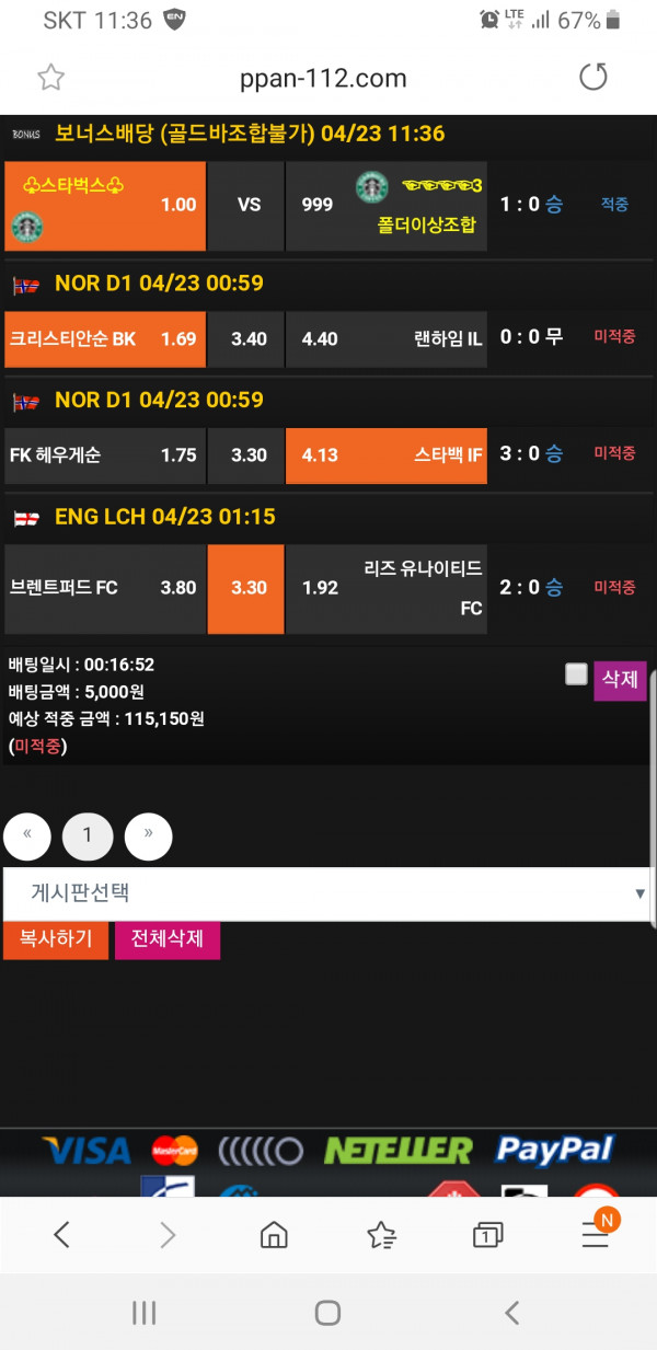 오늘은 3폴낙이시군요 ㅠ_ㅠ 아쉽습니다