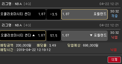 다음 배팅에서는 건승하셔서 낙첨 내역보다 당첨내역이 더 많으셨으면 좋겠습니다