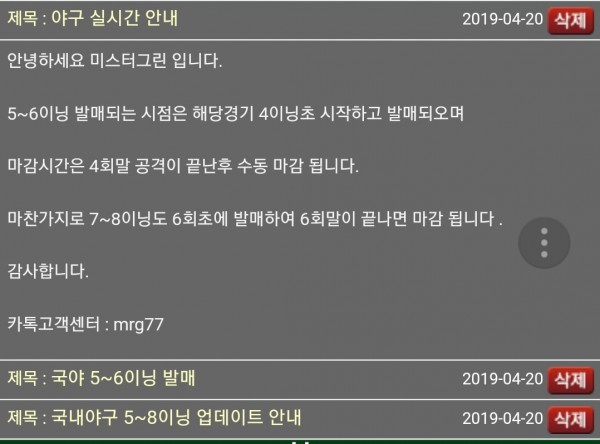 금일 참신한 실시간 야구 처음 접하셨는데 어떠셨는지요~^^