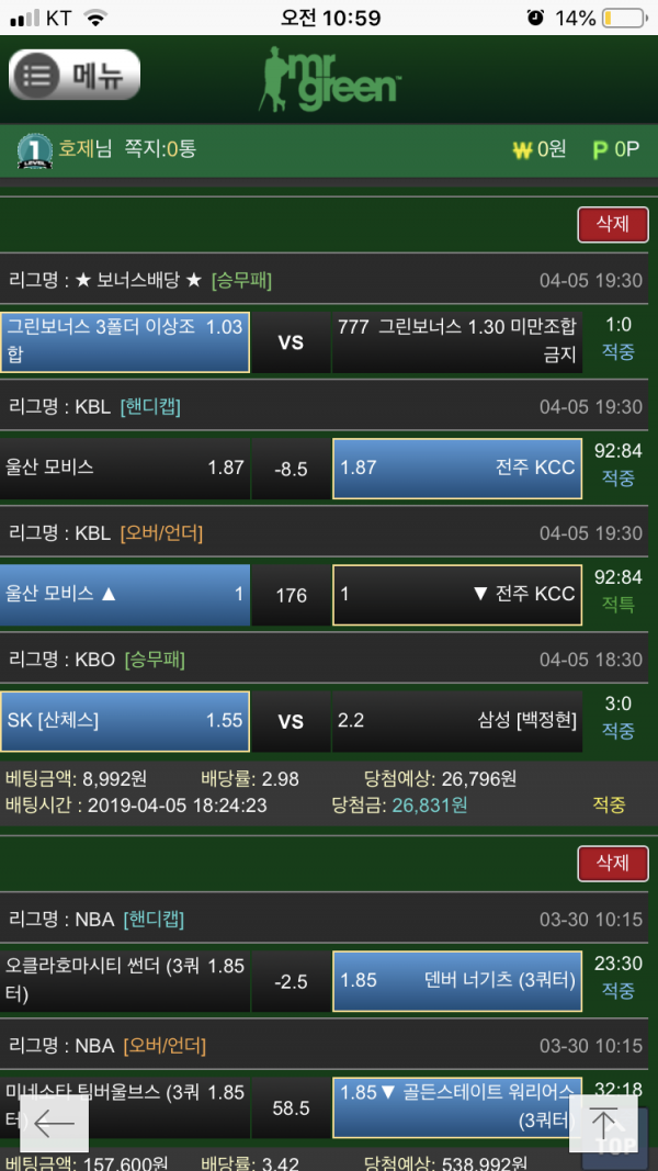 미스터 그린 3폴더 당첨 페이지 정보 작성자 희망찬 작성일19-04-18 11:03 조회188회 댓글0건 관련링크 목록 본문 늦었지만 당첨내역 올립니다 ㅎㅎ 댓글목록 등록된 댓글이 없습니다. 목록