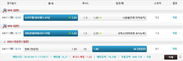 다른 조합은 키움 KT 오버 0.5 차이로 언더나서 미적중 되었네요