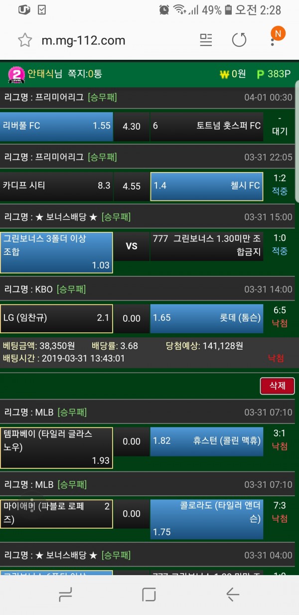 오늘롯데때문에한폴 ㅠㅠ 나머진다맞고있네요 ㅠㅠ새벽다들건승