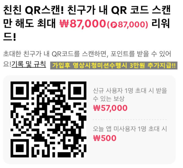 (신규가입후 일주일간 영상시청 미션수행시 3만원 추가지급 신규가입 총8만7천원 지급)