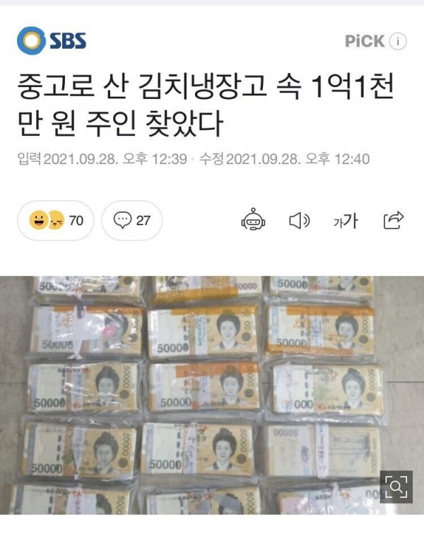 1. 김치냉장고 팔면서 돈 뭉치의 존재를 몰랐던 유가족들.