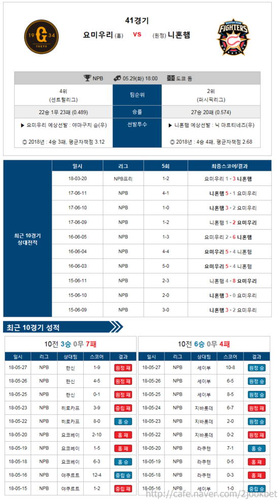 5월 29일 NPB 일야 < 요미우리 vs 니혼햄 > 분석 [출처] 5월 29일 NPB 일야 < 요미우리 v…